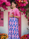 - Colours: A refined candy pink bodice with a graceful blue and pink diamond-print in bottom.